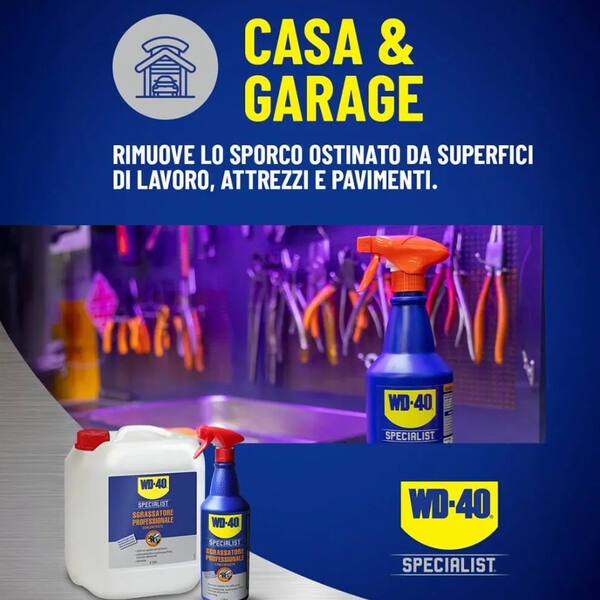Lo Sgrassatore Professionale Concentrato WD-40 Specialist, grazie alla formula innovativa con tensioattivi ad alte prestazioni agisce in maniera veloce ed efficace, rimuovendo sporco ostinato, grasso e residui incrostati. Non abrasivo e sicuro su molteplici superfici. Compatibile con alluminio, seguendo le modalità d’uso. Formula registrata NSF A8.